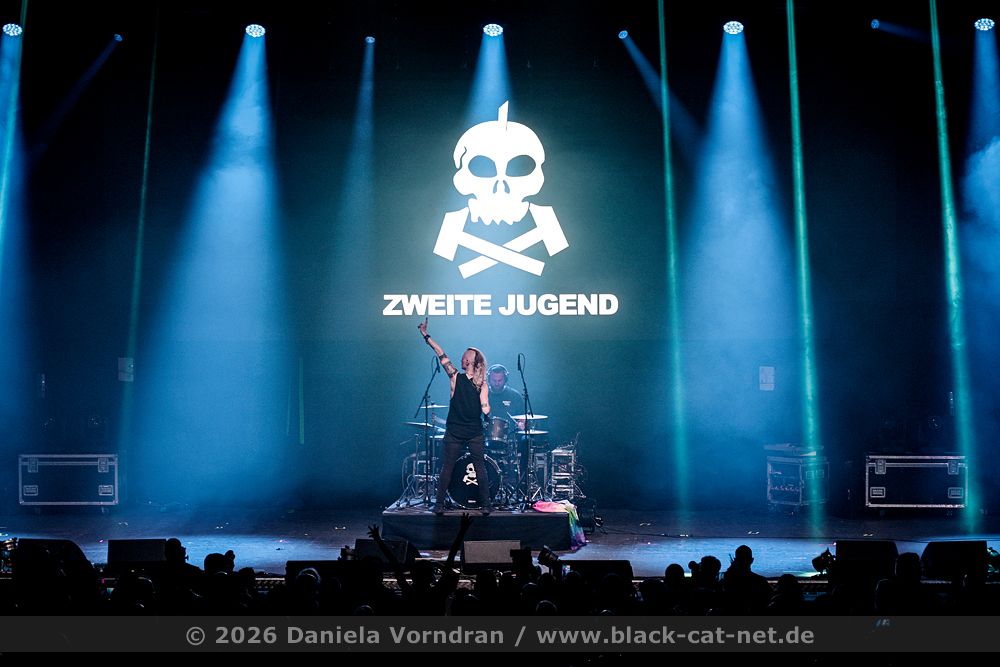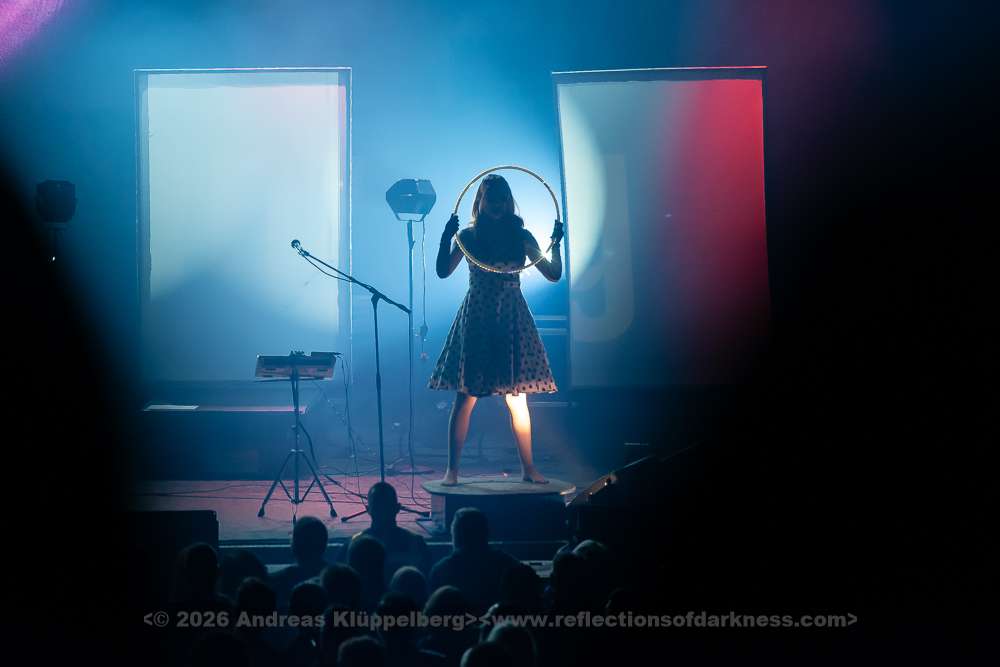 Whenever the two artists share the stage - or dance with and against each other - the already high-energy show gains even more dynamism each time. It is simply a true delight, and the energy level rises once again considerably. At that moment becomes “ganz Oberhausen aus Gold” a choir at a signal - “Hoch die Tassen, auf die Jugend. Auf das Wohl und auf die Tugend...”. To conclude, Eli thanks bandmate Marcel and Franzi, a quick closing photo is taken, and then the musicians leave the stage.