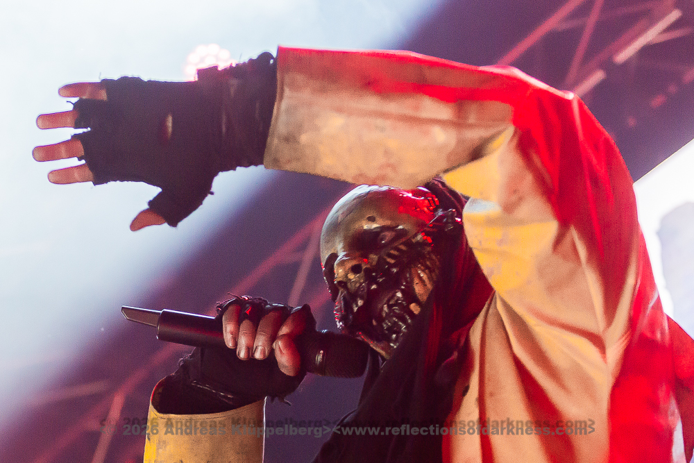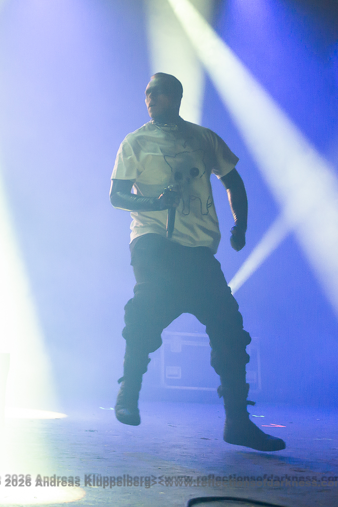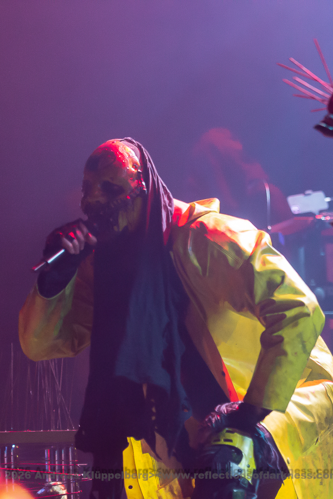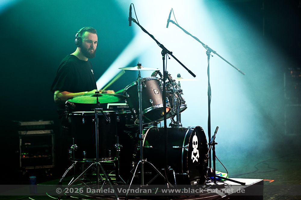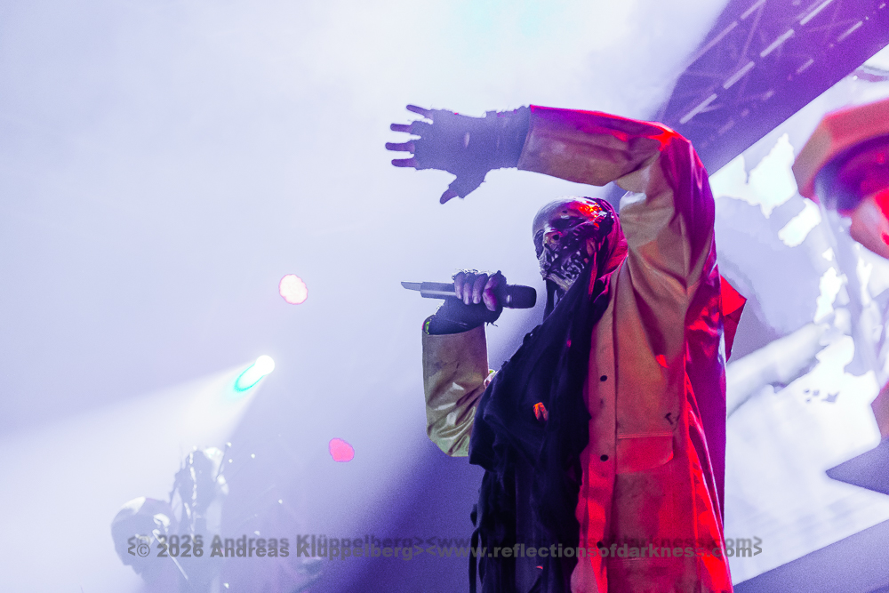Around the middle of the set, we manage to move a bit further towards the centre. From here, I have a better view of the stage, and the sound is also improved. The staging is conceptually dense and consistent throughout. The performance appears deliberately reduced to body language and precise gestures, creating an almost ritualistic atmosphere. The 45-minute performance comes to an end with a short "stop!", forming a coherent fusion of performance, visual symbolism, and complex sound structures into a remarkable highlight of this festival day. // Setlist: 01. New Eden / 02. Flatline Friend / 03. pROGNOSIs / 04. Baptism of Fire / 05. The Needle / 06. uNKNOWn tO vIRTUe / 07. Tyrants