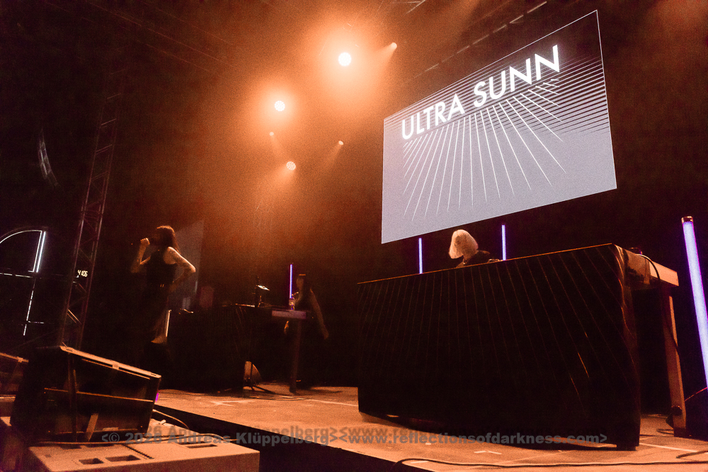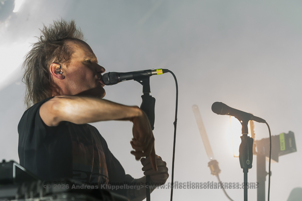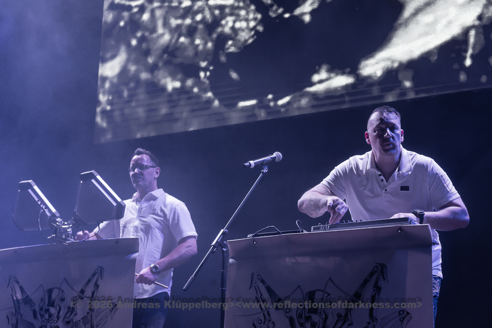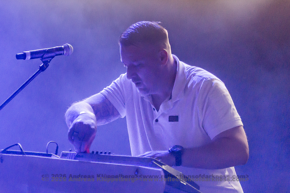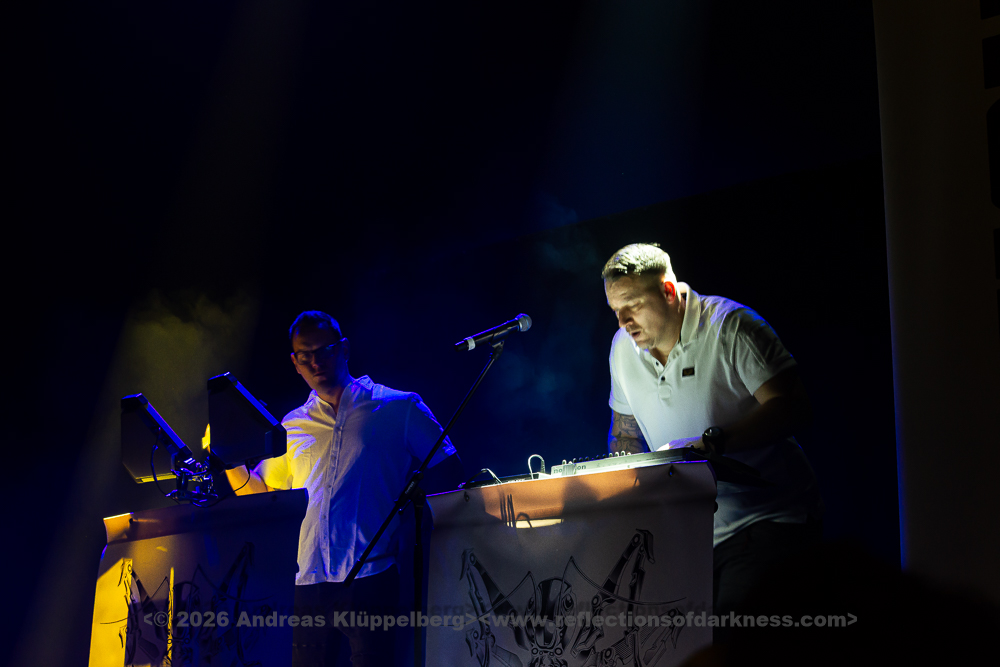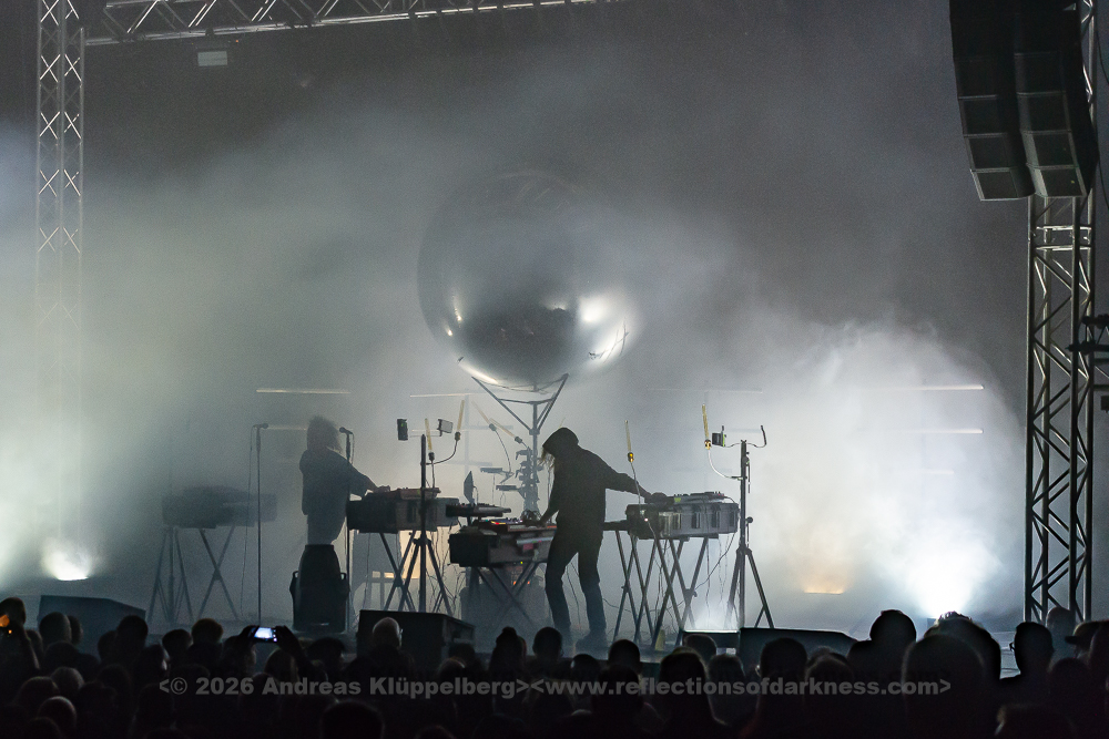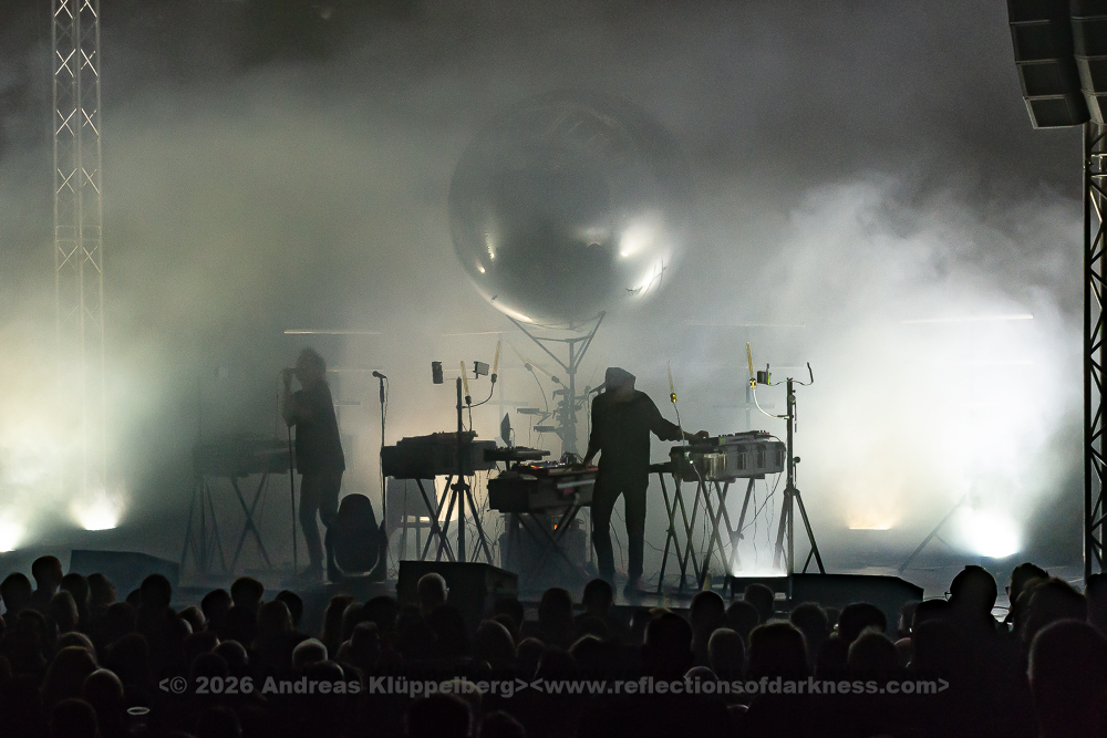 The duo from Gothenburg, consisting of Patrik Hansson and Jonas Olofsson, are supported whenever possible by producer Rob Dust on second keyboard and backing vocals. This is also the case this weekend. During the set, Jonas regularly switches from the electronic drums to the keyboard and back again, or reinforces the vocals with a megaphone. Unfortunately, the sound for the Swedes is not quite as perfectly mixed as before. The bass is booming, and the vocals could do with being a bit louder.