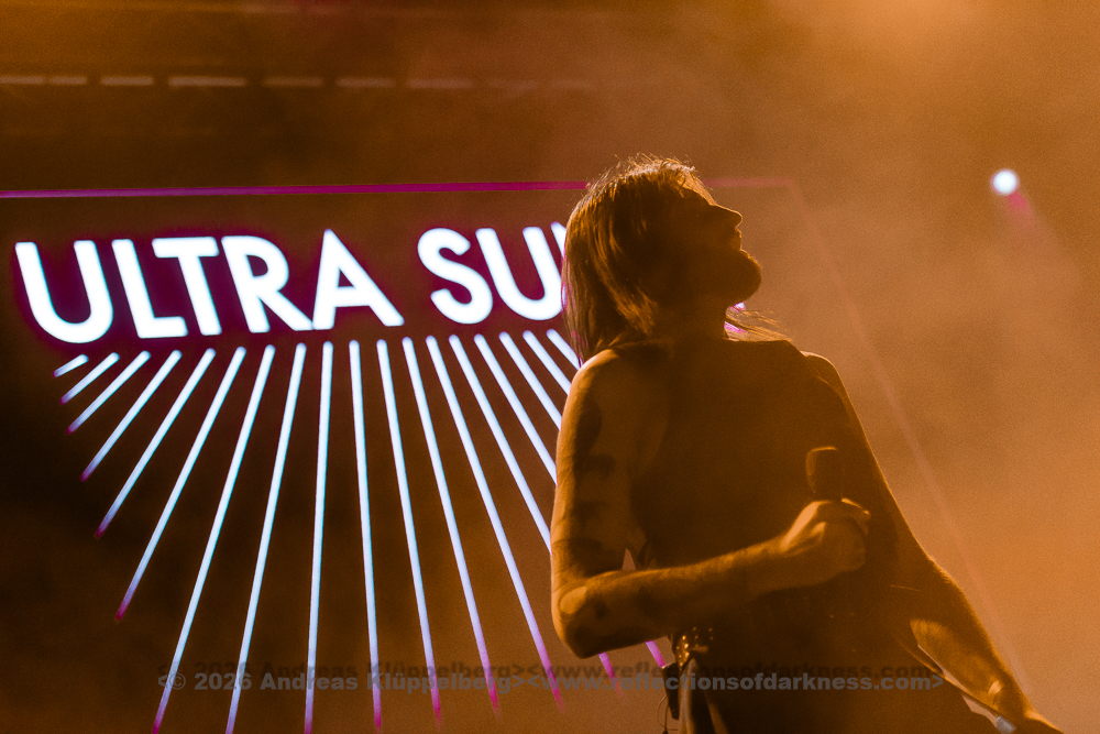 During the changeover break, the hall clears a little, and we manage to make it to the front row for ULTRA SUNN. Host Jens is concerned about the well-being of the festival-goers: “So, everyone still fit? Are you drinking enough?” That would be advisable, because what awaits us is a real power workout. The host is particularly looking forward to the following band - just like I am.