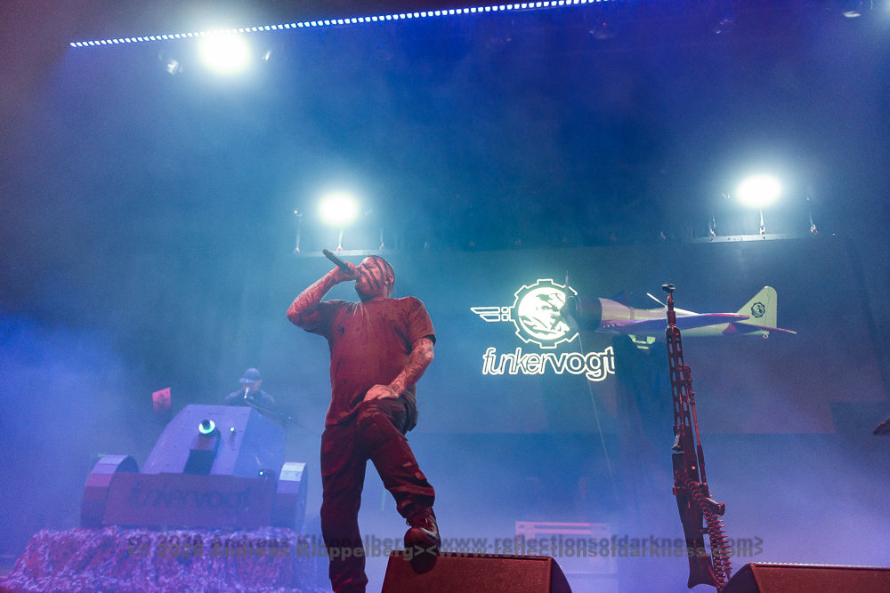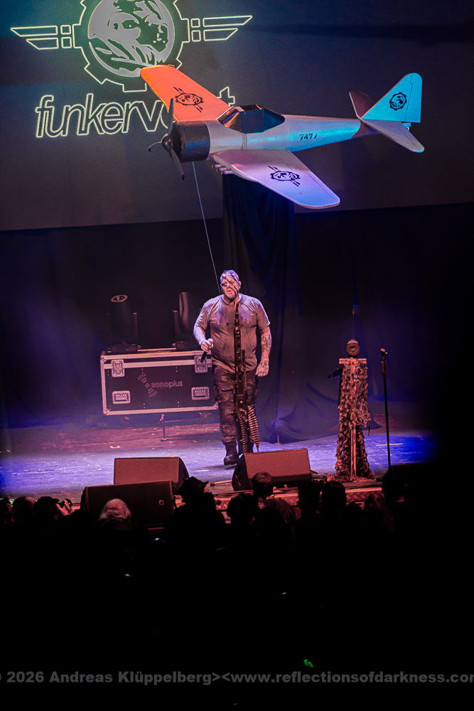 With ‘Salz’, ‘Elektronische Körpermusik’, and ‘Reminiszenz’, the set drives itself towards its first peak. ‘Flucht Von Der Erde’ is an all-time favourite for most fans and is celebrated accordingly with great enthusiasm. “The stage is so big, the band is small.” So, they have brought us a guest. Franzi from AKTION:FIASKO is welcomed with great cheers and heavy applause, and since she has nothing else planned for today, she stays until the end.