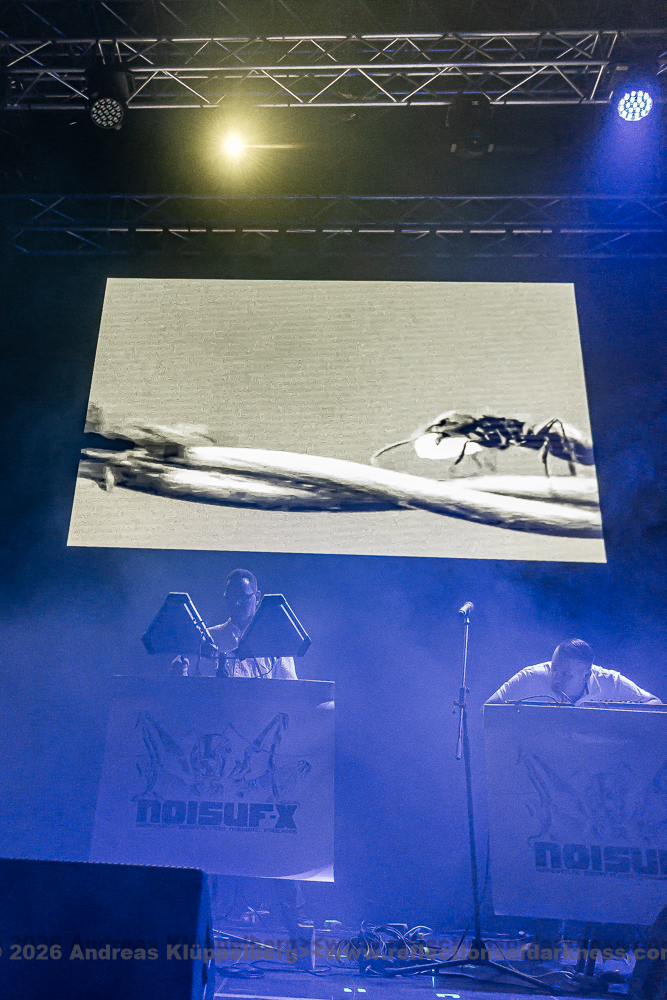 Whether I switch back to the big hall in between to catch a few moments of FUNKER VOGT and FADERHEAD or simply stay with NOISUF-X remains to be seen. I will definitely not make it to SYNTHATTACK, who open the smaller stage today at half past two, nor to WELLE:ERDBALL and COMBICHRIST, who will surely shake the main hall. But I am not here alone. These moments have also been captured in images, so you can at least look forward to a few visual impressions.
