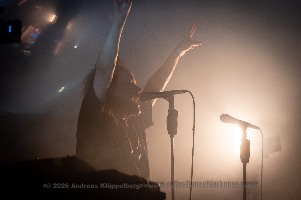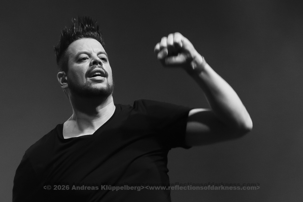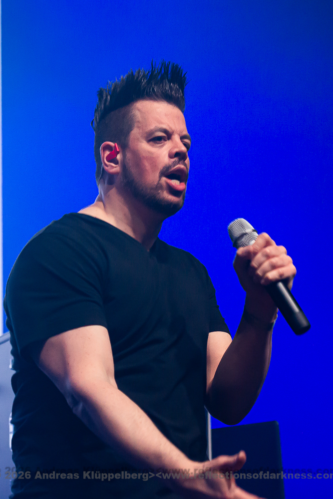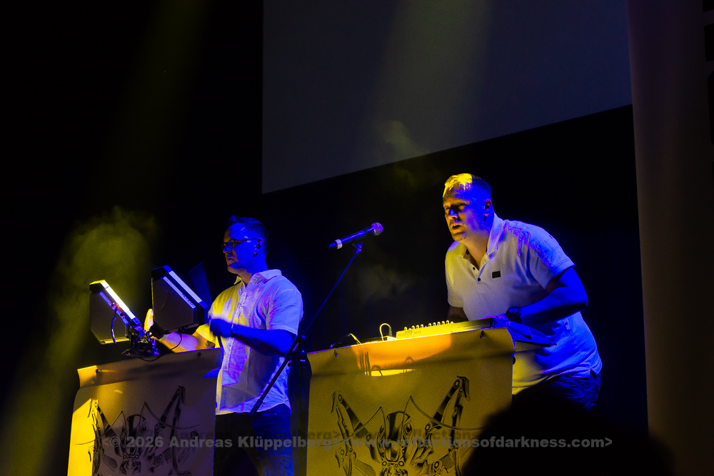 During the changeover break, it remains relatively full; there seems to be little turnover in the audience, and it quickly becomes crowded again. As is often the case at NEUROTICFISH concerts, Sascha is already being cheered during the soundcheck and microphone test. Five minutes before the show begins, Sascha and Henning leave the stage with the request that, in five minutes, we should pretend we have seen nothing. “Then we’ll get started, on time!” - which happens at half past six with great cheers and heavy applause as both artists return.