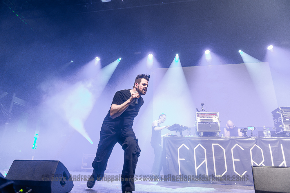 The dark electro project was founded in 2003 in Wiesbaden by Martin Sane and, over the course of several albums, developed into an established force within the Electro-Industrial scene. The band’s name is derived from the psychiatric terms “fixated/sedated”. With ‘The Inevitable Relapse’, they achieved their breakthrough from insider tip to an established scene act. Last year, the project released its sixth studio album, ‘Octagram’, and yet their performance today at E-tropolis Festival 2026 is, in fact, a premiere for me.