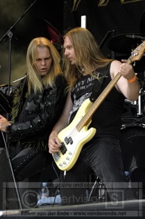 On stage with a huge backdrop of their new album “Full Throttle” the band gave a show of which I almost regretted they had to open the day for us. The use of the stage lights was great but because of the daylight it disappeared to the background. Celebrating their 12,5 years anniversary on this exact day, it was an absolute celebration to see these guys rock! Given the time of day I must say that ‘stage turn on’ Harald really dragged you into the mood, expressing every feel of the songs, teasing the crowd with moves, playing with the mike stand, throwing it up in the air (and missed the catch!) having aqua and beer showers on stage, throwing it into the crowd. Who loved it! And some real great guitar work as well. With many different guitars even the guitar fan had a great view.