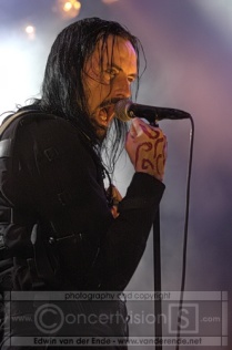 Aaron Stainthorpe is a multitalented front man he can sing with deep emotion in his voice, he can grunt and he can scream. My Dying Bride provided us with dark atmospheres, a tension in the music which is hardly released, only sometimes in a scream of their front man. The keyboards of Sarah Stanton give the music an extra dimension (at least in the songs in which she takes part). Sometimes the guitars provide high melodic tunes as well. The sound was very well adjusted; all instruments and the vocals were in the right balance. Somehow I had expected this doom to provide slow depressing music, but this music takes you on a wonderful trip of dark and intense dreams filled with an great tension.