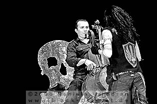 Well, of course, after so much action in stage you need some time to rest. No I’m just kidding. Rest was a borrowed word for Eicca, Perttu and Paavo who were head banging as if there would be no tomorrow and of they weren’t busy doing that than they were heavily focussed on maltreating their cellos from every possible position. Perttu even stepped onto the boxes one time. For the album ‘Worlds Collide’ they again collaborated with many guest vocalists amongst others with Til Lindermann from RAMMSTEIN who gave his voice for a cover of DAVID BOWIE’s sole German song ‘Helden’. Unfortunately he wasn’t there, the band apologized even without any vocals the song still is a beautiful piece of music. A specialty for the crowd came up with the performance of ‘I Don’t Care’ the new single. As there was a singers contest a while back and a guy called Matti from Austria won the battle and was supposed to deliver the vocals for this track now live on stage and he did well.