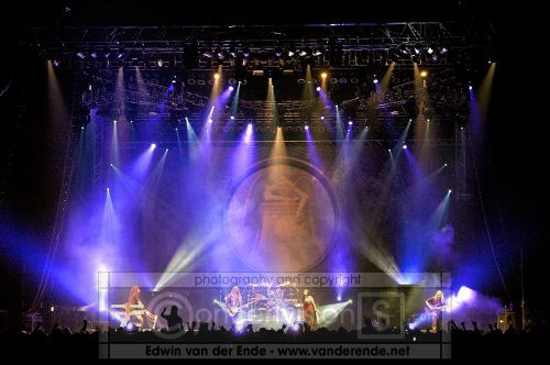 The band starts more than 15 minutes late, because Tarja wasn’t that well. When the band enters the stage I see that the whole arena is totally full. They start with songs of the new record ‘Once’ like “Nemo” and “Ghost love score” but there’s nothing special. The sound is good, but the same as on the record, well nothing to complain, but I expect some more power. After tree songs Tarja disapears off stage to change clothes and Marco sings a cover of Megadeth. Tuomas (keyboards) is that good as always and his parts sounds very clear, but still it’s non-emotional, just like the automatic pilot was switched on. When Tarja is back in a new red outfit the energy comes back a bit. When drummer Jukka gives a good solo in the end I get a bit the old feeling back. He’s the one who’s most energetic tonight and has good interaction with the audience. The crowd in the front enjoys every second; for them it’s really a good show, but to me it was only average.