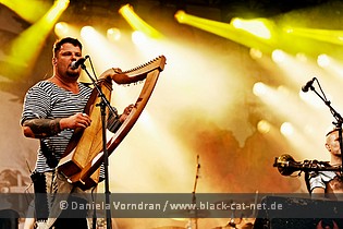 The next crowd pleaser came up with ‘Liam’ and an impressing performance on the pipes within the chorus part. The very metal-laden ‘Vollmond’ shook some heads and ‘Sängerkrieg’ animated to do the “Oh, oh oh, oh oh, oh, ohhhhh” on request of the front wizard. Again and again the impressing fire fingers lit up and catered for content faces. But a band like IN EXTREMO doesn’t actually need such eye-candy to distract from a rather poor show like others do. When you see them acting on stage, you see there’s heartfelt passion for the music, fun being on stage and to have a huge audience to play for. They do not take it for granted and that’s what makes them appealing. Songs like ‘Mein Rasend Herz’ and ‘Küss Mich’ burst with energy and stretched everyone nearly to the limit before the last bits were consumed for a song to life ‘Auf’s Leben’, which meant for IN EXTREMO to say goodbye and leave the stage afterwards, accompanied by roaring fans.