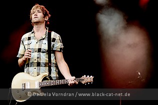 A text in the program book said there were funky elements to the music of MINUS THE BEAR. When I checked them out some time before the festival it sounded much more like indie with a back door for experimentalism, but everyone perceives things differently. ‘Knights’ started their set with a processed sequence to which soon the rest of the instruments kicked in and the band started moving. The lads let follow a track from their new album ‘Omni’, called ‘My Time’, starting from swelling electronics and evolving to a very melodic, catchy song that visibly pleased many of the people in front of the stage, while others were just watching. But for the next song a lot of waving hands could be seen. A track with the lovely title ‘Absinthe Party at the Fly Honey Warehouse’ was closing the set. Not bad, really!