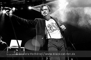 Another cult formation, this time in electronic music, came up with British PORTION CONTROL and just like with DUPONT we had only two guys on stage. This time, however, parts were clearly set and John never moved away from the machines in the course of the show. The show opened with a clean mid-tempo stomper which gave Dean, wandering the stage, the opportunity to introduce us to his very unique style of dancing to those rhythms that with PORTION CONTROL always are laden with cunning and innovative sounds. Those who own the latest of the Septic compilations might be pleased to know that exactly the song ‘Amnesia’ had been played on the festival set as well and it fulfilled its purpose very well in making the crowd dance. It was not clear whether Dean liked what he was seeing at all since he was hardly moving a muscle in his face while his body was twitching all the time and songs like ‘Addiction Rising’ or ‘Relapse’ continued to raise that reaction in the crowd. But the guys seemed to have forgotten time and during one song it seemed that power was just cut and that’s how it ended.