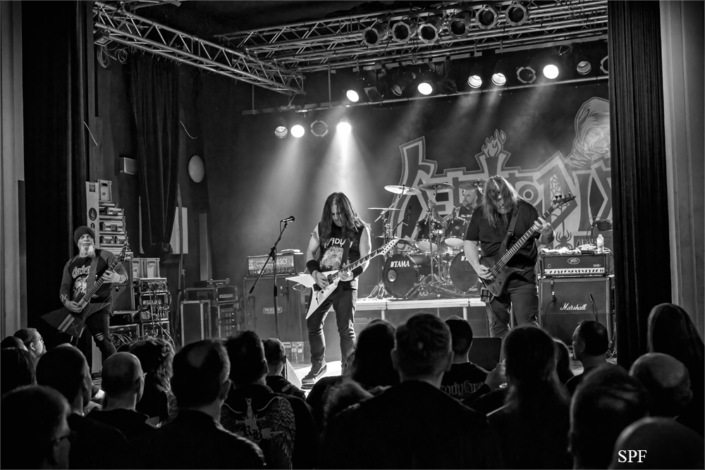 Death Metal supergroup LEFT TO DIE visited the F-Haus in Jena on the “Reborn Dead” tour. Together with two support bands, this concert evening was a blast. First band on stage was PLAGUEMACE from Denmark. Very good straight-forward Death Metal. Second band was HIRAES from Germany. Wow, Melodic Death Metal and so powerful. One thing is for sure you will see this band in the future on many stages because they are great! And the highlight of the evening was the headliner LEFT TO DIE. So many old-school Death Metal fans in the crowd and they all enjoyed the concert from start to end. If you missed it, you can find a few pictures in our gallery.
